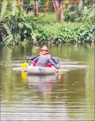Ảnh: Các cán bộ kỹ thuật SEAMAP đang thực hiện đo mặt cắt sông Nhuệ tháng 11 năm 2025