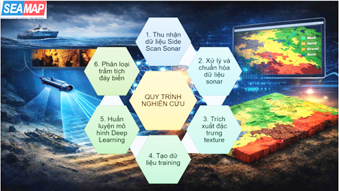 – “Ứng dụng Deep Learning trên nền tảng ArcGIS Pro để phân loại chất đáy tự động từ ảnh Side Scan Sonar”:Công nghệ Deep learning này tận dụng các mô hình học sâu được huấn luyện trước hoặc tùy chỉnh để tự động hóa quy trình phân tích phân loại chất đáy, giảm thiểu thời gian và công sức so với phương pháp thủ công, cải thiện độ chính xác, nâng cao tính nhất quán, xử lý được dữ liệu sonar với khối lượng lớn rất hiệu quả.
