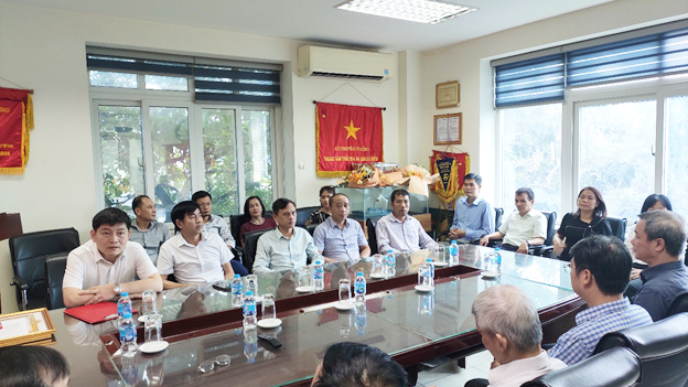 Ảnh: Đại diện Đảng ủy – lãnh đạo Cục, Đảng ủy Bộ phận – lãnh đạo Trung tâm chúc mừng đảng viên nhận huy hiệu Đảng