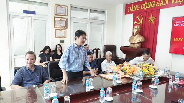 Đồng chí Nguyễn Trung Thành – Bí thư Đảng ủy Bộ phận – Phó Giám đốc Trung tâm cũng gửi lời chúc mừng đến các Đảng viên được trao huy hiệu, đồng chí khẳng định đây là sự ghi nhận xứng đáng của Đảng đối với quá trình phấn đấu, rèn luyện và cống hiến của hai đồng chí Phùng Tiến Nam và Tăng Quốc Cương trong suốt nhiều năm qua. Đồng chí mong muốn các đảng viên tiếp tục cống hiến hết mình cho sự nghiệp của Đảng và sự phát triển của Trung tâm.